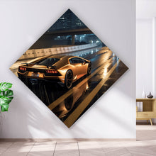 Auf der Suche nach einem ausgefallenen Wandbild als Leinwandbild? Das Motiv Goldener Sportwagen auf nasser Straße bei Nacht als Raute gefällt dir und du hast nach Wandbildern mit den Wörtern Sportwagen, Edel, Luxus, Nacht, Regen, Glanz, Modern, Reflexion, Stadtlicht, Spiegelung, Scheinwerfer und Futuristisch gesucht? Dann ist dieses Leinwandbild in den Farben Schwarz, Gold, Blau und Grau genau das richtige Wandbild und Dekorelement für dich! Setze ein Highlight an deiner Wand! Das Leinwandbild Goldener Sportwagen auf nasser Straße bei Nacht ist in 4 verschiedenen Größen verfügbar, von klein und dezent bis hin zum XXL Leinwandbild.
