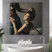 Auf der Suche nach einem ausgefallenen Wandbild als Leinwandbild? Das Motiv Junges Paar in erotischer Pose im Quadrat gefällt dir und du hast nach Wandbildern mit den Wörtern Frau, Mann, Bad, Sexy, Schaum, Jeans, Haare, Erotik, Dynamisch, Bauchmuskeln, Tattoo und Pose gesucht? Dann ist dieses Leinwandbild in den Farben Schwarz, Blau, Beige, Braun und Weiß genau das richtige Wandbild und Dekorelement für dich! Setze ein Highlight an deiner Wand! Das Leinwandbild Junges Paar in erotischer Pose ist in 4 verschiedenen Größen verfügbar, von klein und dezent bis hin zum XXL Leinwandbild.