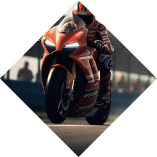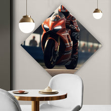 Auf der Suche nach einem ausgefallenen Wandbild als Leinwandbild? Das Motiv Motorradfahrer auf Rennstrecke bei hoher Geschwindigkeit als Raute gefällt dir und du hast nach Wandbildern mit den Wörtern Motorrad, Rennstrecke, Geschwindigkeit, Helm, Sport, Rennen, Adrenalin, Fahrer, Kurve, Asphalt, Motorsport, Motorradrennen, Action, Wettbewerb, Maschine und Technik gesucht? Dann ist dieses Leinwandbild in den Farben Blau, Schwarz und Rot genau das richtige Wandbild und Dekorelement für dich! Setze ein Highlight an deiner Wand! Das Leinwandbild Motorradfahrer auf Rennstrecke bei hoher Geschwindigkeit ist in 4 verschiedenen Größen verfügbar, von klein und dezent bis hin zum XXL Leinwandbild.