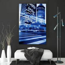 Auf der Suche nach einem ausgefallenen Wandbild als Leinwandbild? Das Motiv Nachtaufnahme einer Stadtstraße mit Hochhäusern im Hochformat gefällt dir und du hast nach Wandbildern mit den Wörtern Stadt, Nacht, Hochhäuser, Lichter, Verkehr, Skyline, Architektur, Urban, Straßen, Beleuchtung, Bewegung, Wolkenkratzer, Großstadt, Reflektionen und Metropole gesucht? Dann ist dieses Leinwandbild in den Farben Weiß, Schwarz und Blau genau das richtige Wandbild und Dekorelement für dich! Setze ein Highlight an deiner Wand! Das Leinwandbild Nachtaufnahme einer Stadtstraße mit Hochhäusern ist in 4 verschiedenen Größen verfügbar, von klein und dezent bis hin zum XXL Leinwandbild.