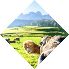 Auf der Suche nach einem ausgefallenen Wandbild als Leinwandbild? Das Motiv Neugierige Kuh auf grüner Wiese vor Berglandschaft als Raute gefällt dir und du hast nach Wandbildern mit den Wörtern Kuh, Wiese, Berge, Natur, Landschaft, Tier, Weide, Bauernhof, Gras, Himmel, Alpen, Idylle, Frühling, Land, Landwirtschaft, Rinder, Tierwelt, Panorama und Freilandhaltung gesucht? Dann ist dieses Leinwandbild in den Farben Blau, Grün und Braun genau das richtige Wandbild und Dekorelement für dich! Setze ein Highlight an deiner Wand! Das Leinwandbild Neugierige Kuh auf grüner Wiese vor Berglandschaft ist in 4 verschiedenen Größen verfügbar, von klein und dezent bis hin zum XXL Leinwandbild.