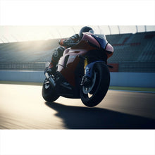 Auf der Suche nach einem ausgefallenen Wandbild als Leinwandbild? Das Motiv Rennmotorrad bei Sonnenuntergang auf Rennstrecke im Querformat gefällt dir und du hast nach Wandbildern mit den Wörtern Motorrad, Rennstrecke, Geschwindigkeit, Sport, Rennfahrer, Motorsport, Adrenalin, Asphalt, Rennanzug, Helm, Wettbewerb, Rennsport, Dynamik, Licht, Schatten, Technik und Leistung gesucht? Dann ist dieses Leinwandbild in den Farben Schwarz, Rot und Gold genau das richtige Wandbild und Dekorelement für dich! Setze ein Highlight an deiner Wand! Das Leinwandbild Rennmotorrad bei Sonnenuntergang auf Rennstrecke ist in 4 verschiedenen Größen verfügbar, von klein und dezent bis hin zum XXL Leinwandbild.