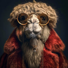 - Motivname: Stylisches Kamel mit Brille und rotem Mantel