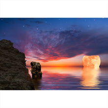 Auf der Suche nach einem ausgefallenen Wandbild als Leinwandbild? Das Motiv Vollmond über dem Meer im Querformat gefällt dir und du hast nach Wandbildern mit den Wörtern Mond, Vollmond, Felsen, Landschaft, Meer, Wolken und Abend gesucht? Dann ist dieses Leinwandbild in der Farbe Bunt genau das richtige Wandbild und Dekorelement für dich! Setze ein Highlight an deiner Wand! Das Leinwandbild Vollmond über dem Meer ist in 5 verschiedenen Größen verfügbar, von klein und dezent bis hin zum XXL Leinwandbild.