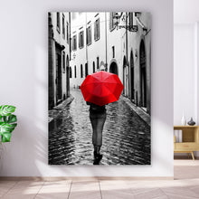 Auf der Suche nach einem ausgefallenen Wandbild als Leinwandbild? Das Motiv Walk Away im Hochformat gefällt dir und du hast nach Wandbildern mit den Wörtern Straße, Frau, Regenschirm, Regen und Stadt gesucht? Dann ist dieses Leinwandbild in den Farben Schwarz-Weiß und Rot genau das richtige Wandbild und Dekorelement für dich! Setze ein Highlight an deiner Wand! Das Leinwandbild Walk Away ist in 5 verschiedenen Größen verfügbar, von klein und dezent bis hin zum XXL Leinwandbild.