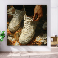Auf der Suche nach einem ausgefallenen Wandbild als Leinwandbild? Das Motiv Weiße Sneaker auf glühendem blumenbedecktem Boden im Quadrat gefällt dir und du hast nach Wandbildern mit den Wörtern Sneaker, Schuhe, Mode, Blumen, Hand, Schnürsenkel, Glühen, Stil, Trend, Detail, Fußbekleidung, Accessoire und Eleganz gesucht? Dann ist dieses Leinwandbild in den Farben Weiß, Schwarz und Gold genau das richtige Wandbild und Dekorelement für dich! Setze ein Highlight an deiner Wand! Das Leinwandbild Weiße Sneaker auf glühendem blumenbedecktem Boden ist in 4 verschiedenen Größen verfügbar, von klein und dezent bis hin zum XXL Leinwandbild.
