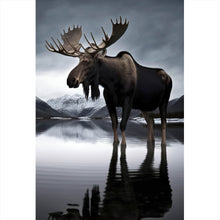 • Lade das Bild in den Galerie-Viewer, Poster Berglandschaft mit See und Elch in Abendstimmung Hochformat