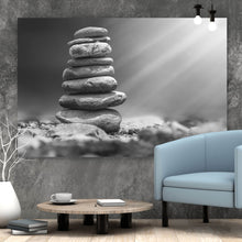 Auf der Suche nach einem ausgefallenen Wandbild als Poster? Das Motiv Gestapelte Steine im Querformat gefällt dir und du hast nach Wandbildern mit den Wörtern Steine, Stapel, Feng Shui, Natur, Entspannung, Relax und Wellness gesucht? Dann ist dieses Poster in der Farbe Schwarz-Weiß genau das richtige Wandbild und Dekorelement für dich! Setze ein Highlight an deiner Wand! Das Poster Gestapelte Steine ist in 4 verschiedenen Größen verfügbar, von klein und dezent bis hin zum XXL Poster.