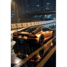 Das Poster Goldener Sportwagen auf nasser Straße bei Nacht im Hochformat hat eine glänzende Oberfläche und wird auf qualitativ hochwertigem Fotopapier mit 260 g/m² digital gedruckt. Poster oder auch oft Kunstdrucke genannt, sind die einfachste und günstigste Art, deinen Raum in ein Highlight zu verwandeln und einen Akzent zu setzen. Poster, die auch nach Jahren noch wie neu aussehen und strahlen.