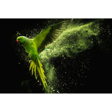 Auf der Suche nach einem ausgefallenen Wandbild als Poster? Das Motiv Grüner Papagei im Querformat gefällt dir und du hast nach Wandbildern mit den Wörtern Papagei, Vogel, Farbpulver und Splash gesucht? Dann ist dieses Poster in den Farben Schwarz und Grün genau das richtige Wandbild und Dekorelement für dich! Setze ein Highlight an deiner Wand! Das Poster Grüner Papagei ist in 4 verschiedenen Größen verfügbar, von klein und dezent bis hin zum XXL Poster.