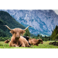 Das Poster Hochlandrinder Herde im Querformat hat eine glänzende Oberfläche und wird auf qualitativ hochwertigem Fotopapier mit 260 g/m² digital gedruckt. Poster oder auch oft Kunstdrucke genannt, sind die einfachste und günstigste Art, deinen Raum in ein Highlight zu verwandeln und einen Akzent zu setzen. Poster, die auch nach Jahren noch wie neu aussehen und strahlen.