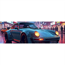 - Motivname: Klassischer Sportwagen in nächtlicher neonbeleuchteter Stadtstraße