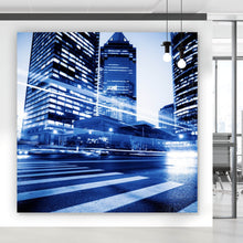 Das Poster Nachtaufnahme einer Stadtstraße mit Hochhäusern im Quadrat hat eine glänzende Oberfläche und wird auf qualitativ hochwertigem Fotopapier mit 260 g/m² digital gedruckt. Poster oder auch oft Kunstdrucke genannt, sind die einfachste und günstigste Art, deinen Raum in ein Highlight zu verwandeln und einen Akzent zu setzen. Poster, die auch nach Jahren noch wie neu aussehen und strahlen.