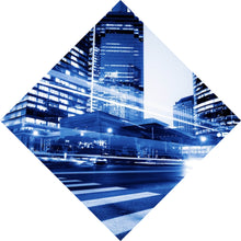 Das Poster Nachtaufnahme einer Stadtstraße mit Hochhäusern als Raute hat eine glänzende Oberfläche und wird auf qualitativ hochwertigem Fotopapier mit 260 g/m² digital gedruckt. Poster oder auch oft Kunstdrucke genannt, sind die einfachste und günstigste Art, deinen Raum in ein Highlight zu verwandeln und einen Akzent zu setzen. Poster, die auch nach Jahren noch wie neu aussehen und strahlen.