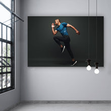 Auf der Suche nach einem ausgefallenen Wandbild als Poster? Das Motiv Run im Querformat gefällt dir und du hast nach Wandbildern mit den Wörtern Sport, Rennen, Motivation, Laufen, Mann, Fitness und Fitnessstudio gesucht? Dann ist dieses Poster in den Farben Schwarz und Blau genau das richtige Wandbild und Dekorelement für dich! Setze ein Highlight an deiner Wand! Das Poster Run ist in 4 verschiedenen Größen verfügbar, von klein und dezent bis hin zum XXL Poster.