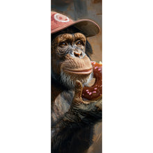 Auf der Suche nach einem ausgefallenen Wandbild als Poster? Das Motiv Schimpanse genießt Donat im Panorama Hoch gefällt dir und du hast nach Wandbildern mit den Wörtern Schimpanse, Tier, Vintage, Donat, Nascherei, Wildtier und Affe gesucht? Dann ist dieses Poster in der Farbe Bunt genau das richtige Wandbild und Dekorelement für dich! Setze ein Highlight an deiner Wand! Das Poster Schimpanse genießt Donat ist in 3 verschiedenen Größen verfügbar, von klein und dezent bis hin zum XXL Poster.