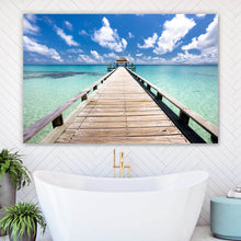 Auf der Suche nach einem ausgefallenen Wandbild als Poster? Das Motiv Steg im Indischen Ozean im Querformat gefällt dir und du hast nach Wandbildern mit den Wörtern Wasser, Meer, Haus, Strand, Urlaub, Ozean, Insel, Sommer, Sand, Steg, Brücke, Holzbrücke und Weg gesucht? Dann ist dieses Poster in den Farben Weiß, Blau und Türkis genau das richtige Wandbild und Dekorelement für dich! Setze ein Highlight an deiner Wand! Das Poster Steg im Indischen Ozean ist in 4 verschiedenen Größen verfügbar, von klein und dezent bis hin zum XXL Poster.