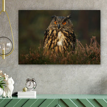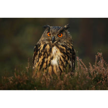 Auf der Suche nach einem ausgefallenen Wandbild als Poster? Das Motiv Uhu im Heidekraut im Querformat gefällt dir und du hast nach Wandbildern mit den Wörtern Uhu, Eule, Tiere, Vögel und Natur gesucht? Dann ist dieses Poster in den Farben Braun und Grün genau das richtige Wandbild und Dekorelement für dich! Setze ein Highlight an deiner Wand! Das Poster Uhu im Heidekraut ist in 4 verschiedenen Größen verfügbar, von klein und dezent bis hin zum XXL Poster.