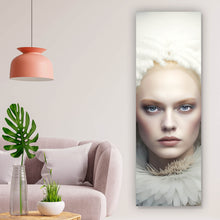 Das Spannrahmenbild Ausdrucksstarke Frau mit modernem Kopfschmuck im Panorama Hoch gehört mit großem Abstand zu den edelsten Wandbildvarianten. Textilspannrahmen, oft auch Frameless, Aluframes oder Textilspannrahmen genannt, sind die perfekte Kombination aus einem 25 mm starken eloxiertem Aluminiumrahmen und einem hochwertigen Sublimationsdruck auf einem Textil Banner. Der leichte Alurahmen, das Textilbanner mit Gummilippe und eine Aufhängung gibt es bei uns im praktischen Komplettset. Spannbilder sind eine großartige Alternative zu allen anderen Wandbild Arten und vermitteln eine luxuriöse und anmutende Ausstrahlung. Auch ein kurzfristiger Motivwechsel ist mit einem Spannrahmenbild kein Problem mehr, da die Drucke einfach austauschbar sind. Da sich der Rahmen ja dann bereits im Besitz befindet, kann einfach ein passender Ersatzdruck kostengünstig nachbestellt werden, selbstverständlich auch mit einem anderen Motiv. Im Handumdrehen erstrahlt die Wand in neuem Glanz. Der Textildruck ist B1 zertifiziert und somit auch ideal für Gewerbe, Büro oder Praxis. Spannrahmenbilder, die auch nach Jahren noch wie neu aussehen und strahlen.