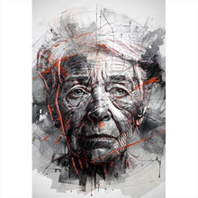 Auf der Suche nach einem ausgefallenen Wandbild als Spannrahmenbild? Das Motiv Ausdrucksstarkes Porträt einer älteren Frau künstlerisch gestaltet No.2 im Hochformat gefällt dir und du hast nach Wandbildern mit den Wörtern Porträt, Kunst, Zeichnung, Frau, Alter, Gesicht, Ausdruck, Linien, Struktur, Kunstwerk, Emotion, Details, Schwarzweiß, Rotakzente, Kreativität, Design, Künstlerisch und Charakter gesucht? Dann ist dieses Spannrahmenbild in den Farben Weiß, Schwarz, Grau und Rot genau das richtige Wandbild und Dekorelement für dich! Setze ein Highlight an deiner Wand! Das Spannrahmenbild Ausdrucksstarkes Porträt einer älteren Frau künstlerisch gestaltet No.2 ist in 4 verschiedenen Größen verfügbar, von klein und dezent bis hin zum XXL Spannrahmenbild.
