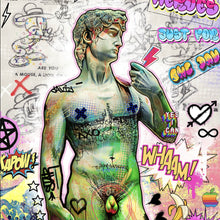 Auf der Suche nach einem ausgefallenen Wandbild als Spannrahmenbild? Das Motiv David Statue bunte Illustration Street Art im Quadrat gefällt dir und du hast nach Wandbildern mit den Wörtern Pop Art, Körperkunst, Modern, Grafikdesign, Urban, Sprüche, Textblasen, Dynamisch, Comic, Vibrant, Statue und David gesucht? Dann ist dieses Spannrahmenbild in der Farbe Bunt genau das richtige Wandbild und Dekorelement für dich! Setze ein Highlight an deiner Wand! Das Spannrahmenbild David Statue bunte Illustration Street Art ist in 4 verschiedenen Größen verfügbar, von klein und dezent bis hin zum XXL Spannrahmenbild.