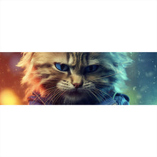 Das Spannrahmenbild Fantasie Katze als Rebell Digital Art im Panorama gehört mit großem Abstand zu den edelsten Wandbildvarianten. Textilspannrahmen, oft auch Frameless, Aluframes oder Textilspannrahmen genannt, sind die perfekte Kombination aus einem 25 mm starken eloxiertem Aluminiumrahmen und einem hochwertigen Sublimationsdruck auf einem Textil Banner. Der leichte Alurahmen, das Textilbanner mit Gummilippe und eine Aufhängung gibt es bei uns im praktischen Komplettset. Spannbilder sind eine großartige Alternative zu allen anderen Wandbild Arten und vermitteln eine luxuriöse und anmutende Ausstrahlung. Auch ein kurzfristiger Motivwechsel ist mit einem Spannrahmenbild kein Problem mehr, da die Drucke einfach austauschbar sind. Da sich der Rahmen ja dann bereits im Besitz befindet, kann einfach ein passender Ersatzdruck kostengünstig nachbestellt werden, selbstverständlich auch mit einem anderen Motiv. Im Handumdrehen erstrahlt die Wand in neuem Glanz. Der Textildruck ist B1 zertifiziert und somit auch ideal für Gewerbe, Büro oder Praxis. Spannrahmenbilder, die auch nach Jahren noch wie neu aussehen und strahlen.
