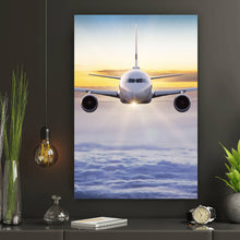 Auf der Suche nach einem ausgefallenen Wandbild als Spannrahmenbild? Das Motiv Flugzeug fliegt über den Wolken im Hochformat gefällt dir und du hast nach Wandbildern mit den Wörtern Flugzeug, Himmel, Wolken, Sonnenuntergang, Reise, Fliegen, Luftfahrt, Transport, Flügel, Triebwerke, Horizont, Flug, Technik, Freiheit, Fernweh, Reiseziele, Flugreise, Jet, Hochfliegen und Luftverkehr gesucht? Dann ist dieses Spannrahmenbild in den Farben Weiß, Blau und Orange genau das richtige Wandbild und Dekorelement für dich! Setze ein Highlight an deiner Wand! Das Spannrahmenbild Flugzeug fliegt über den Wolken ist in 4 verschiedenen Größen verfügbar, von klein und dezent bis hin zum XXL Spannrahmenbild.