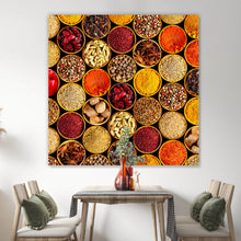 Auf der Suche nach einem ausgefallenen Wandbild als Spannrahmenbild? Das Motiv Gewürzvielfalt auf schwarzem Hintergrund im Quadrat gefällt dir und du hast nach Wandbildern mit den Wörtern Gewürze, Bunt, Geschmack, Scharf, Vielfalt, Trocken, Essen, Kochen, Exotisch, Aroma, Genuss und Ernährung gesucht? Dann ist dieses Spannrahmenbild in den Farben Braun, Gelb und Orange genau das richtige Wandbild und Dekorelement für dich! Setze ein Highlight an deiner Wand! Das Spannrahmenbild Gewürzvielfalt auf schwarzem Hintergrund ist in 4 verschiedenen Größen verfügbar, von klein und dezent bis hin zum XXL Spannrahmenbild.