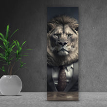 Auf der Suche nach einem ausgefallenen Wandbild als Spannrahmenbild? Das Motiv Löwe im Anzug sitzt majestätisch im Büro im Panorama Hoch gefällt dir und du hast nach Wandbildern mit den Wörtern Löwe, Anzug, Büro, Majestätisch, Tier, Geschäftsmann, Symbolik, Macht, Stärke, Eleganz, Tierkopf, Schreibtisch, Stuhl, Krawatte, Führung, Autorität, Kreativität, Surreal, Fantasie, Erfolg und Business gesucht? Dann ist dieses Spannrahmenbild in den Farben Braun, Weiß, Grau und Beige genau das richtige Wandbild und Dekorelement für dich! Setze ein Highlight an deiner Wand! Das Spannrahmenbild Löwe im Anzug sitzt majestätisch im Büro ist in 3 verschiedenen Größen verfügbar, von klein und dezent bis hin zum XXL Spannrahmenbild.