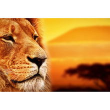 • Lade das Bild in den Galerie-Viewer, Spannrahmenbild Löwenportrait bei Sonnenuntergang Querformat