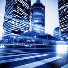 - Motivname: Nachtaufnahme einer Stadtstraße mit Hochhäusern