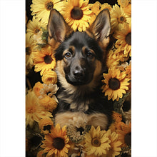 - Motivname: Niedlicher Schäferhund umgeben von gelben Blumen