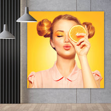 Auf der Suche nach einem ausgefallenen Wandbild als Spannrahmenbild? Das Motiv Sommermädchen mit einer Orange im Quadrat gefällt dir und du hast nach Wandbildern mit den Wörtern Sommer, Mädchen, Frisch, Orange, Früchte, Obst, Modell, Gesicht, Weiblich, Schön und Frau gesucht? Dann ist dieses Spannrahmenbild in der Farbe Orange genau das richtige Wandbild und Dekorelement für dich! Setze ein Highlight an deiner Wand! Das Spannrahmenbild Sommermädchen mit einer Orange ist in 4 verschiedenen Größen verfügbar, von klein und dezent bis hin zum XXL Spannrahmenbild.