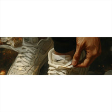 Auf der Suche nach einem ausgefallenen Wandbild als Spannrahmenbild? Das Motiv Weiße Sneaker auf glühendem blumenbedecktem Boden im Panorama gefällt dir und du hast nach Wandbildern mit den Wörtern Sneaker, Schuhe, Mode, Blumen, Hand, Schnürsenkel, Glühen, Stil, Trend, Detail, Fußbekleidung, Accessoire und Eleganz gesucht? Dann ist dieses Spannrahmenbild in den Farben Weiß, Schwarz und Gold genau das richtige Wandbild und Dekorelement für dich! Setze ein Highlight an deiner Wand! Das Spannrahmenbild Weiße Sneaker auf glühendem blumenbedecktem Boden ist in 3 verschiedenen Größen verfügbar, von klein und dezent bis hin zum XXL Spannrahmenbild.