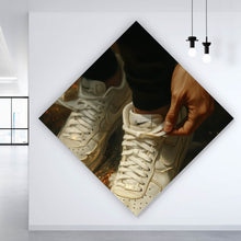 Auf der Suche nach einem ausgefallenen Wandbild als Spannrahmenbild? Das Motiv Weiße Sneaker auf glühendem blumenbedecktem Boden als Raute gefällt dir und du hast nach Wandbildern mit den Wörtern Sneaker, Schuhe, Mode, Blumen, Hand, Schnürsenkel, Glühen, Stil, Trend, Detail, Fußbekleidung, Accessoire und Eleganz gesucht? Dann ist dieses Spannrahmenbild in den Farben Weiß, Schwarz und Gold genau das richtige Wandbild und Dekorelement für dich! Setze ein Highlight an deiner Wand! Das Spannrahmenbild Weiße Sneaker auf glühendem blumenbedecktem Boden ist in 4 verschiedenen Größen verfügbar, von klein und dezent bis hin zum XXL Spannrahmenbild.