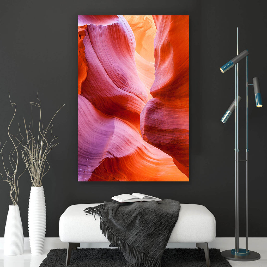 Auf der Suche nach einem ausgefallenen Wandbild als Leinwandbild? Das Motiv Antelope Canyon im Hochformat gefällt dir und du hast nach Wandbildern mit den Wörtern Canyon, Natur, Felsen, Schlucht, Landschaft und Wüste gesucht? Dann ist dieses Leinwandbild in den Farben Orange und Rot genau das richtige Wandbild und Dekorelement für dich! Setze ein Highlight an deiner Wand! Das Leinwandbild Antelope Canyon ist in 5 verschiedenen Größen verfügbar, von klein und dezent bis hin zum XXL Leinwandbild.