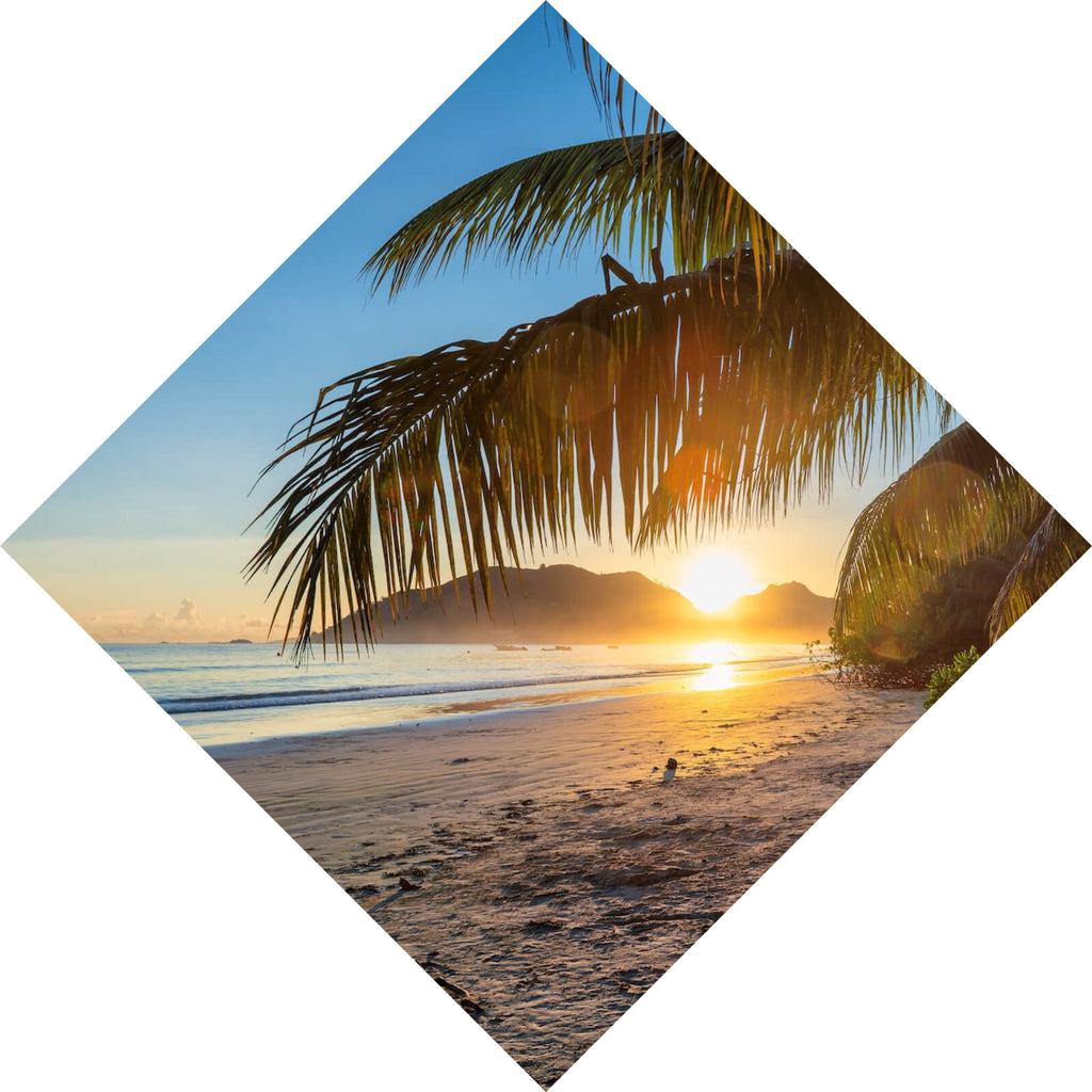Auf der Suche nach einem ausgefallenen Wandbild als Leinwandbild? Das Motiv Atemberaubender Strand Sonnenuntergang als Raute gefällt dir und du hast nach Wandbildern mit den Wörtern Strand, Sand, Meer, Palmen, Sonnenuntergang, Urlaub, Entspannung, Natur, Küste, Reise, Idylle, Ozean, Harmonie und Ruhe gesucht? Dann ist dieses Leinwandbild in der Farbe Bunt genau das richtige Wandbild und Dekorelement für dich! Setze ein Highlight an deiner Wand! Das Leinwandbild Atemberaubender Strand Sonnenuntergang ist in 4 verschiedenen Größen verfügbar, von klein und dezent bis hin zum XXL Leinwandbild.