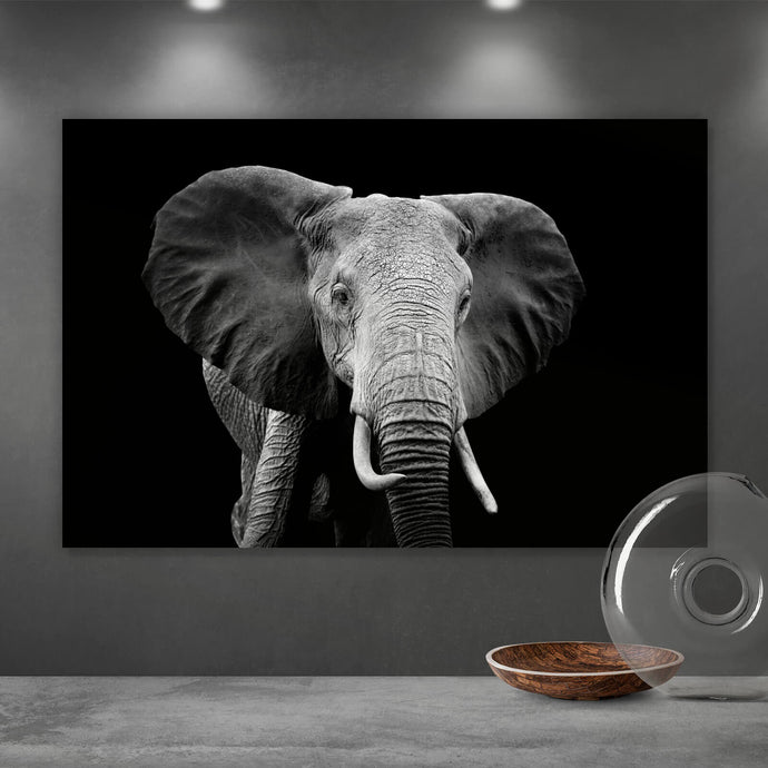 Poster Nashorn auf schwarzem Hintergrund Panorama Hoch