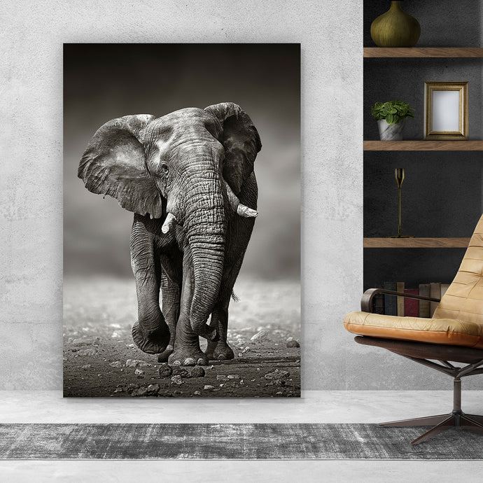 Poster Afrikanischer Elefant in Schwarz Weiß Hochformat