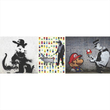 Auf der Suche nach einem ausgefallenen Wandbild als Acrylglasbild? Das Motiv Banksy - Charakter Collage im Panorama gefällt dir und du hast nach Wandbildern mit den Wörtern Banksy, Kunst, Streetart, Charakter, Collage, Style, Graffiti, Modern Art, Blume und Mario gesucht? Dann ist dieses Acrylglasbild in der Farbe Bunt genau das richtige Wandbild und Dekorelement für dich! Setze ein Highlight an deiner Wand! Das Acrylglasbild Banksy - Charakter Collage ist in 4 verschiedenen Größen verfügbar, von klein und dezent bis hin zum XXL Acrylglasbild.