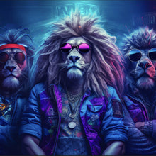 Auf der Suche nach einem ausgefallenen Wandbild als Acrylglasbild? Das Motiv Löwen Trio Cool Digital Art im Quadrat gefällt dir und du hast nach Wandbildern mit den Wörtern Löwen, Raubkatze, Lederjacke, Gang, Hip, Cool, Brille, Nacht, Bande und Fantasie gesucht? Dann ist dieses Acrylglasbild in den Farben Blau, Lila, Pink und Türkis genau das richtige Wandbild und Dekorelement für dich! Setze ein Highlight an deiner Wand! Das Acrylglasbild Löwen Trio Cool Digital Art ist in 4 verschiedenen Größen verfügbar, von klein und dezent bis hin zum XXL Acrylglasbild.