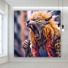 Auf der Suche nach einem ausgefallenen Wandbild als Acrylglasbild? Das Motiv Rockiger Leopard der singt im Quadrat gefällt dir und du hast nach Wandbildern mit den Wörtern Leopard, Rockstar, Bühne, Mikrofon, Gesang, Kostüm, Musik, Wild, Kreativ, Leidenschaft, Laut, Kunst, Energie, Unterhaltung und Konzert gesucht? Dann ist dieses Acrylglasbild in der Farbe Bunt genau das richtige Wandbild und Dekorelement für dich! Setze ein Highlight an deiner Wand! Das Acrylglasbild Rockiger Leopard der singt ist in 4 verschiedenen Größen verfügbar, von klein und dezent bis hin zum XXL Acrylglasbild.