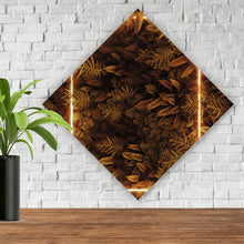 Auf der Suche nach einem ausgefallenen Wandbild als Aluminiumbild? Das Motiv Blätter mit Neon Lichtrahmen als Raute gefällt dir und du hast nach Wandbildern mit den Wörtern Laub, Blätter, Licht, Rahmen, Herbst, Neon, Frame, Jungle und Jungel gesucht? Dann ist dieses Aluminiumbild in den Farben Braun und Orange genau das richtige Wandbild und Dekorelement für dich! Setze ein Highlight an deiner Wand! Das Aluminiumbild Blätter mit Neon Lichtrahmen ist in 4 verschiedenen Größen verfügbar, von klein und dezent bis hin zum XXL Aluminiumbild.