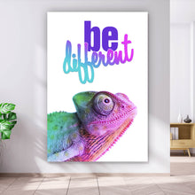 Auf der Suche nach einem ausgefallenen Wandbild als Aluminiumbild? Das Motiv Chamäleon Be Different im Hochformat gefällt dir und du hast nach Wandbildern mit den Wörtern Chamäleon, Sprüche, Bunt, Tiere und Echse gesucht? Dann ist dieses Aluminiumbild in der Farbe Bunt genau das richtige Wandbild und Dekorelement für dich! Setze ein Highlight an deiner Wand! Das Aluminiumbild Chamäleon Be Different ist in 5 verschiedenen Größen verfügbar, von klein und dezent bis hin zum XXL Aluminiumbild.