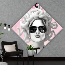 Auf der Suche nach einem ausgefallenen Wandbild als Aluminiumbild gebürstet? Das Motiv Frauengesicht mit Schlangen als Raute gefällt dir und du hast nach Wandbildern mit den Wörtern Frau, Gesicht, Modern Art, Schlangen und Tiere gesucht? Dann ist dieses Aluminiumbild gebürstet in den Farben Rosa, Pink und Schwarz-Weiß genau das richtige Wandbild und Dekorelement für dich! Setze ein Highlight an deiner Wand! Das Aluminiumbild gebürstet Frauengesicht mit Schlangen ist in 4 verschiedenen Größen verfügbar, von klein und dezent bis hin zum XXL Aluminiumbild gebürstet.