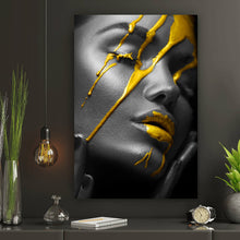 Auf der Suche nach einem ausgefallenen Wandbild als Aluminiumbild gebürstet? Das Motiv Golden Face im Hochformat gefällt dir und du hast nach Wandbildern mit den Wörtern Lippen, Frau, Gesicht und Beauty gesucht? Dann ist dieses Aluminiumbild gebürstet in den Farben Schwarz und Gold genau das richtige Wandbild und Dekorelement für dich! Setze ein Highlight an deiner Wand! Das Aluminiumbild gebürstet Golden Face ist in 4 verschiedenen Größen verfügbar, von klein und dezent bis hin zum XXL Aluminiumbild gebürstet.