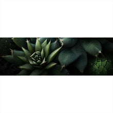 Das gebürstete Aluminiumbild Verschiedene Sukkulenten im Panorama hat eine matte Oberfläche und wird direkt auf eine 3 mm starke gebürstete Aluminium Verbundplatte digital gedruckt. Wandbilder im Edelstahl Look wirken besonders edel, da die gebürstete, metallisch anmutende Oberfläche hindurchscheint. Bei weißen und hellen Stellen kommt dieser metallische Effekt noch besser zur Geltung, da Weiß nicht gedruckt wird und das charakteristische Aluminium somit komplett sichtbar ist. Unsere Aluminiumbilder haben einen Kern aus schwarzem Polyethylen, der von beiden Seiten mit einer 0,3 mm starken Aluminiumschicht überzogen und matt gebürstet ist. Gegenüber Material aus reinem Aluminium verfügen unsere Aluminiumplatten über ein deutlich geringeres Gewicht, was die Montage stark vereinfacht. Wandbilder im Alu Look sind wasserfest und auch für den Außenbereich geeignet. Gebürstete Aluminiumbilder, die auch nach Jahren noch wie neu aussehen und strahlen.
