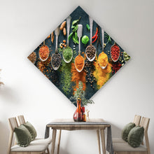 Auf der Suche nach einem ausgefallenen Wandbild als Aluminiumbild? Das Motiv Gewürzvielfalt auf Löffeln als Raute gefällt dir und du hast nach Wandbildern mit den Wörtern Gewürze, Kräuter, Kochen, Geschmack, Vielfalt, Bunt, Genuss und Löffel gesucht? Dann ist dieses Aluminiumbild in der Farbe Bunt genau das richtige Wandbild und Dekorelement für dich! Setze ein Highlight an deiner Wand! Das Aluminiumbild Gewürzvielfalt auf Löffeln ist in 4 verschiedenen Größen verfügbar, von klein und dezent bis hin zum XXL Aluminiumbild.