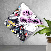 Auf der Suche nach einem ausgefallenen Wandbild als Aluminiumbild? Das Motiv Illustration mit Sprüchen im Comicstil als Raute gefällt dir und du hast nach Wandbildern mit den Wörtern Inspritation, Graffiti, Träume, Pop Art, Sprüche, Illustration, Street Art, Comicstil, Motivation, Karikatur und Dynamik gesucht? Dann ist dieses Aluminiumbild in der Farbe Bunt genau das richtige Wandbild und Dekorelement für dich! Setze ein Highlight an deiner Wand! Das Aluminiumbild Illustration mit Sprüchen im Comicstil ist in 4 verschiedenen Größen verfügbar, von klein und dezent bis hin zum XXL Aluminiumbild.