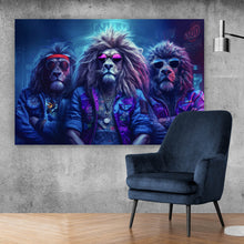 Auf der Suche nach einem ausgefallenen Wandbild als Aluminiumbild? Das Motiv Löwen Trio Cool Digital Art im Querformat gefällt dir und du hast nach Wandbildern mit den Wörtern Löwen, Raubkatze, Lederjacke, Gang, Hip, Cool, Brille, Nacht, Bande und Fantasie gesucht? Dann ist dieses Aluminiumbild in den Farben Blau, Lila, Pink und Türkis genau das richtige Wandbild und Dekorelement für dich! Setze ein Highlight an deiner Wand! Das Aluminiumbild Löwen Trio Cool Digital Art ist in 5 verschiedenen Größen verfügbar, von klein und dezent bis hin zum XXL Aluminiumbild.